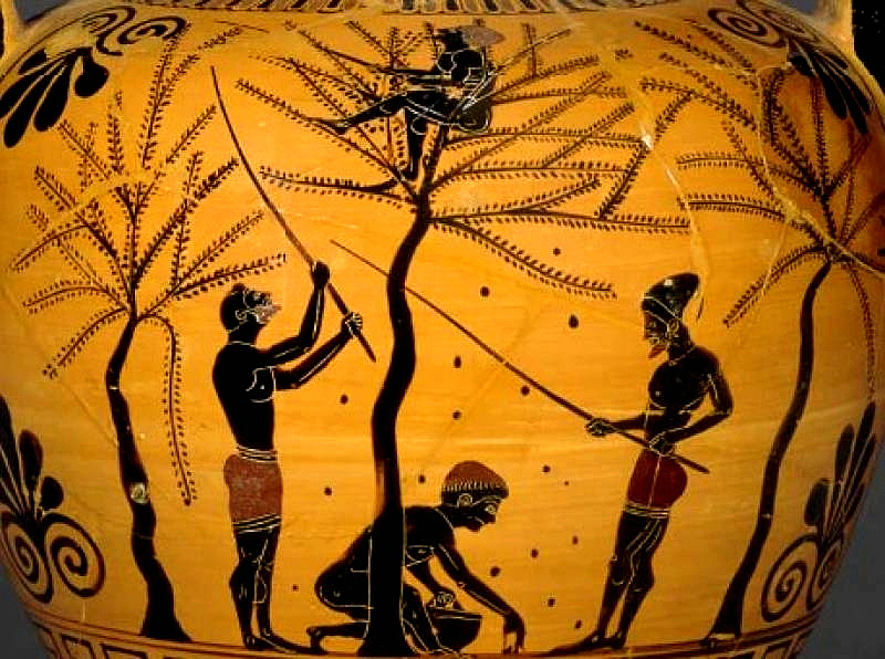Ο τρόπος για την συλλογή που χρησιμοποιούν και σήμερα στο χωριό είναι ο ίδιος των αρχαίων δημοτών όπως φαίνεται στην εικονογράφηση του αγγείου.